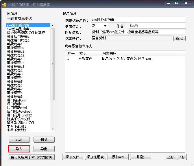说明:本规则是模块化,不针对具体的病毒,而是将各类病毒的动作拆开分析后对它们普遍的单个动作进行防御.大部分病毒基本都会多少报出一两个动作.误报不多,菜鸟可以使用。