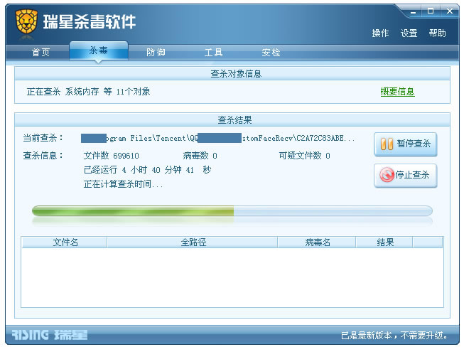 关于全盘杀毒中断的问题