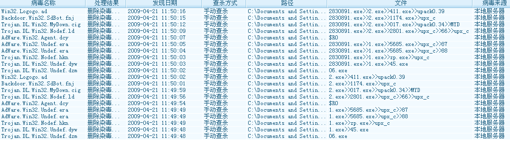 防火墙弹出提示有一个IE的程序企图进入我的电脑,我不认识便选择了阻止,马上又出现发现病毒的对话框,要求删除发现的病毒,我都点击了确定。通过查看历史记录看到文件监控发现并成功删除了5个病毒,而桌面图标排列不知为何被打乱,多出了四个图标:黄金眼007网址导航、在线交友视频棋牌、在线游戏、IE,而这个IE跟系统的IE图标外形一样,使我分不清真正的IE图标是哪个。