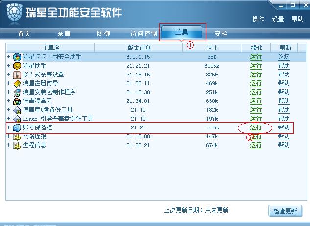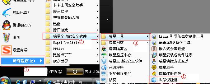 方法二:点击开始……程序……瑞星杀毒软件……瑞星工具……账号保险柜