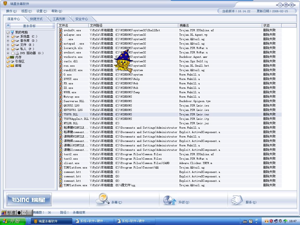 | 【終生學習的贴子】 哇 你的局欲望的那台电脑怎么那么多毒啊??是不是测试包来的?? 有个问题问问你,,,,,瑞星2006怎么杀局域网的病毒啊??都没有选项是查局域网的选项啊,,记得当我还用2004的时候有的选择,,现在2006没有了,,,那么怎么查杀局域网内的机器啊? ........................... |