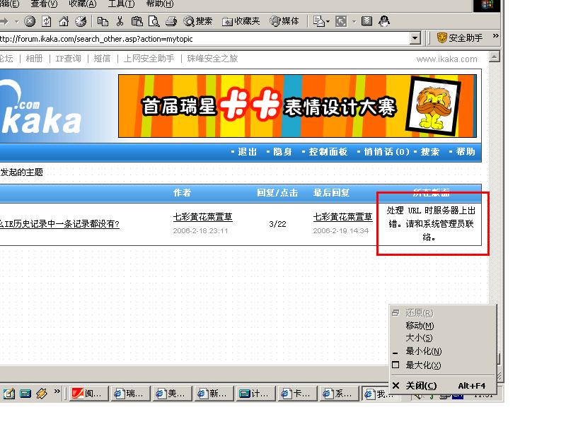 查看完整版本: 最近卡卡常出现:处理 URL 时服务器上出错。悄悄话也发不了