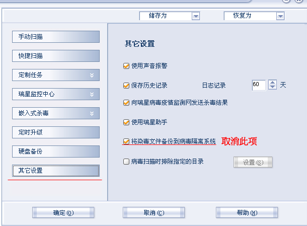 RISING监控发现我电脑里有病毒,自动就给删到隔离区去了,可是那个东西是我要用的,怎么才能让RISING的监控忽略该文件。