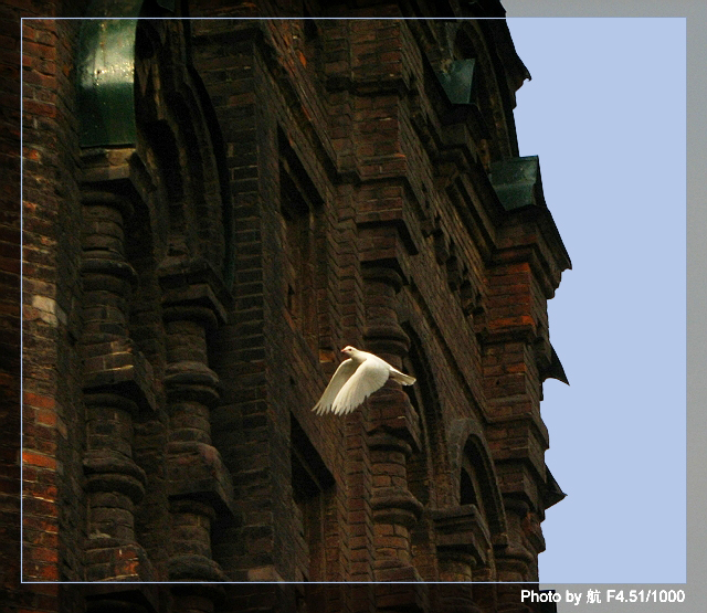 第一张,古色的建筑,间杂鸽白.并着眼一只的翔.