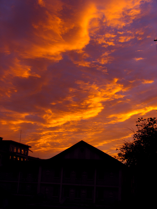 我看到的时候还只是灰与蓝色呢...带了相机,可是都被高楼挡住,就知难而退了!