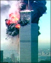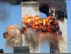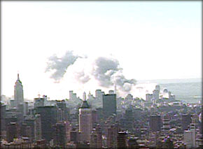 第二次撞击发生时,飞机撞向世贸大厦的瞬间