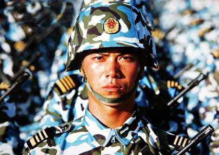 这是在国庆50周年首都盛大阅兵式中首次亮相的海军陆战队战士