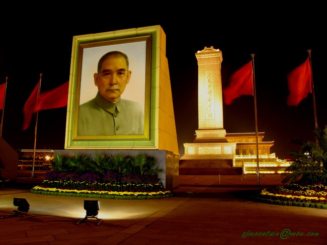 每年的“五一”、“十一”,在天安门广场人民英雄纪念碑北侧都要安放国父孙中山的画像。