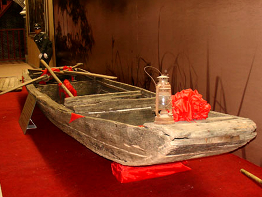 1934年10月17日,中央红军8.7万人渡过于都河,踏上战略转移的漫漫征程,这是当年群众送红军过河时用过的渡船.