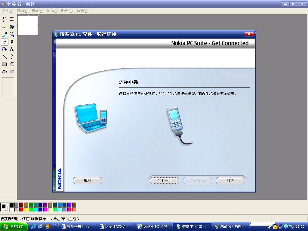 刚买了诺基亚N70 第一次连电脑 成功的,但当第2次就连不上是怎么回事,要不药那里设置一下的吗? 就和图片上的一样动也不动的~