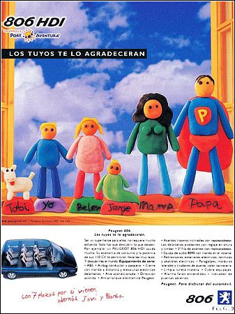 标致广告,用充满童趣的粘土来表现五口之家和一只宠物狗,表现出孩子纯真的愿望:“希望全家可以一起出门游玩。”3排座超大空间的家用旅行车变成符合这一梦想。标致该款车成功实现孩子梦想的,也让爸爸在孩子眼里成为了无所不能的超人形象。