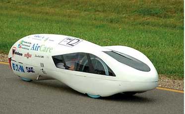 告诉你一个秘密:若想调整汽车在道路上的能量消耗,你其实并不需要有臭味的代用燃料或者电动机。有时,这仅仅需要一点聪明才智。加拿大一个工程小组凭借其开发的80磅、碳化纤维材料的Mark V 赢得了年度Supermileage比赛冠军。“Mark V”每加仑天然气可行驶3,145英里,这要归功于诸如弯曲车体下部设计、超强节能发动机和要充分理解龟兔赛跑精髓的司机等细节。不过,这种车有个缺点,你只能躺着驾驶,而且车窗不能打开。