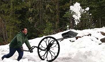 雪景很漂亮,在雪中玩耍也是件趣事,但清除积雪是件苦差事。吹雪机有噪音,破坏环境,用铁锹铲雪可能让你累个半死。估计每年因清除积雪导致受伤的大约有72000人。Enter the Wovel是一种建在一个36英寸长的轮子上的新型铁铲。它的工作原理就像一个秋千:按下一端的把手,另一端的铲身就会举起来,让铲子扬起。这种工具,再配上一个切削板来扫雪,能让繁重的铲雪工作变得轻松、有趣。