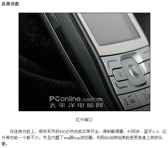 最近的手机市场可以说是热闹非凡,而智能手机便是“闹市”的主角。索爱的UIQ智能机型M608和P990的高调入市刮起一股不小的风潮。诺基亚的攻势也是一浪接一浪,N系列及E系列的新机型相继上市,近期最热的莫过于顶级机王N93与娱乐小生N73。而定位商务系列的E系列机型也是不容忽视的,前段时间登陆的E60、E61均给大家留下深刻的印象,本期我们为大家带来的就是E系列另一台机型E50。