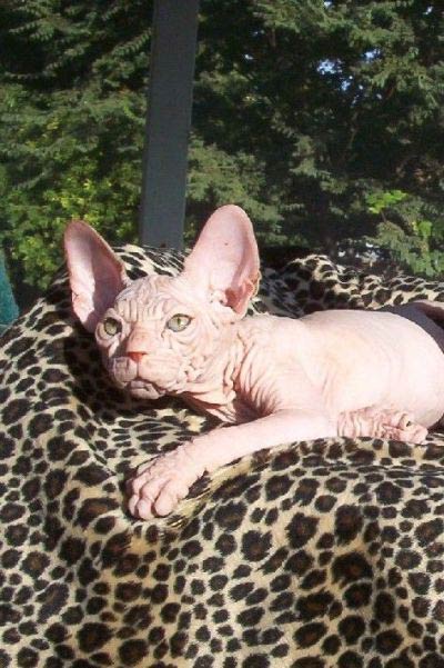 这就是 夏威夷山上仅存 18只的 猫性格温顺 也跟其他猫科类一样 活跃 由于 它身上没有毛 所以大量捕食来补充大量流失的热量 虽然看起来 比较难看但据说 手感挺好 (真皮的哦 呵呵)