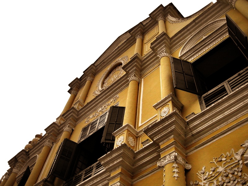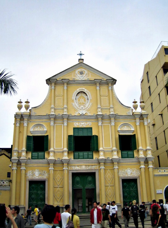 大三巴原来是座教堂,后被大火烧得只剩座前墙。