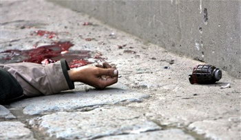 2006年10月5日,一名死去的克什米尔武装人员身体旁边有一颗未爆炸的手榴弹。