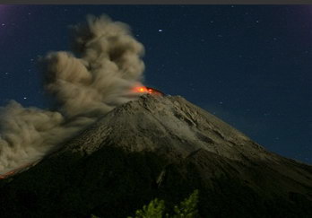 2006年5月14日,印尼默拉皮火山喷射出岩浆和浓烟。