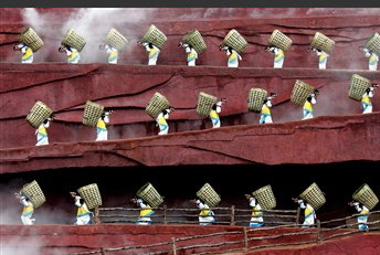2006年7月24日,身着民族服装的女子在中国云南丽江市表演“印象·丽江”。