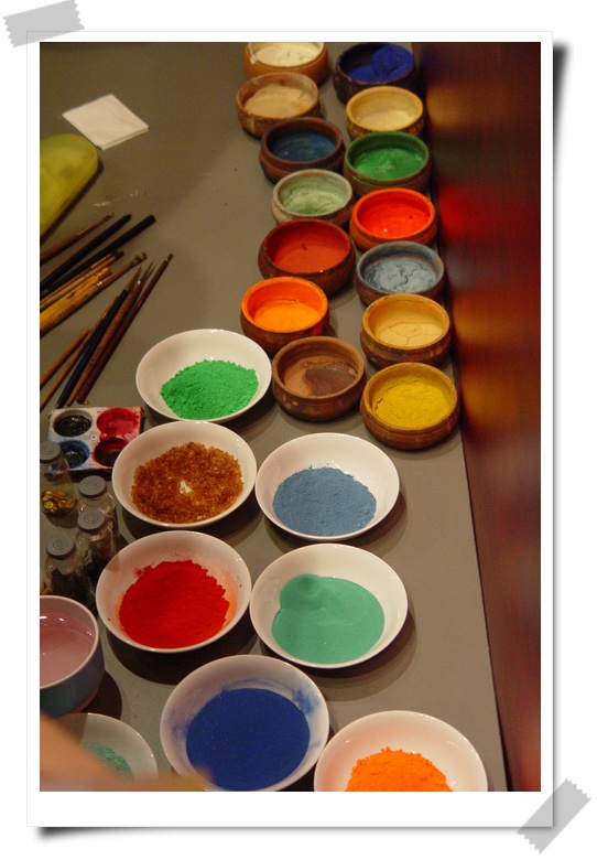过去的唐卡画师在绘画的时候需要节欲、食素,保持口气的清新和心灵的纯净,以期实现心与笔的通灵。现在情况已经改变了许多,老画师在舌尖调色的习惯已经被年轻一代摈弃,他们更喜欢用一碗清水来洗笔......