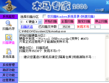 首页 » 技术交流区 » 反病毒/反流氓软件论坛 » 【求助】这是我扫描的日志文件,高手帮忙看看.还有截图