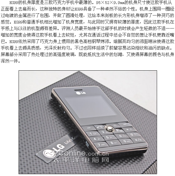 最轻薄时尚的自动对焦!LG直板巧克力KG99评测