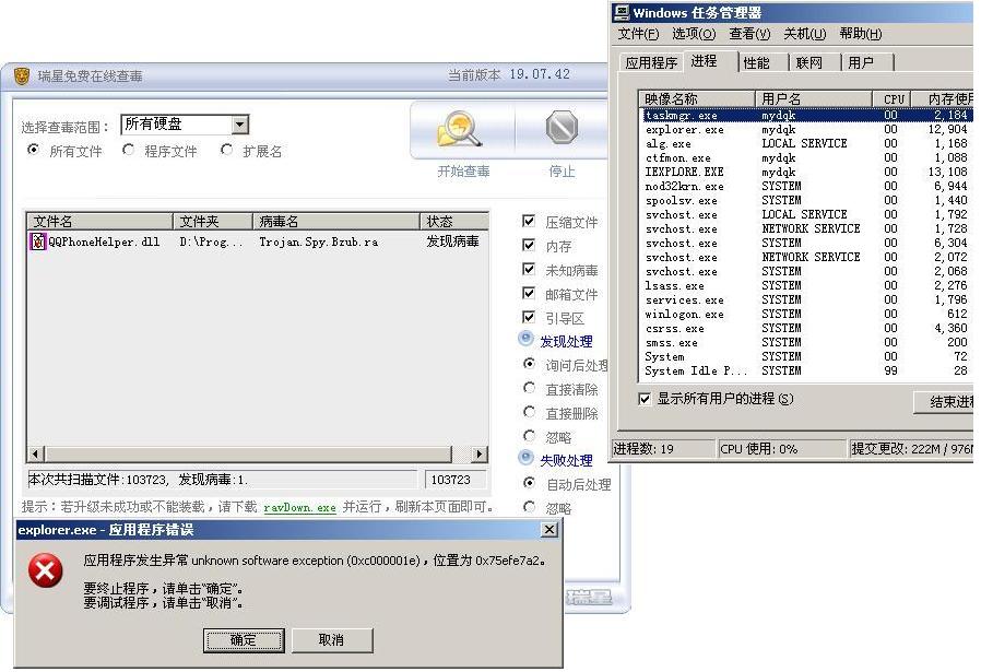 查看进程中有 explorer.exe 和IEXPLORE.EXE 搜索找不到文件