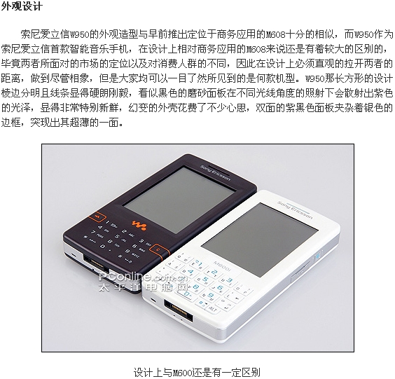 面对内置微硬盘大容量手机的种种缺陷,索尼爱立信W950首度内置了高达4G的闪存,海量的闪存容量与微硬盘容量相当,并且还具有低耗电、高反应速度、高抗震性、体积小巧等特性,在性能方面彻底的领先与对手。一款容手写、键盘、4G闪存以及Symbian UIQ 3.0操作系统于一体的W950表现实在让人期待,为了能够让大家对其有着最为深入的了解和认识,我们对其进行了最为详尽的测试,测试报告下面便为大家奉上。
