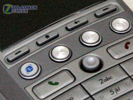 摩托罗拉E680g的正面按键设计也依然延续了E680的风格,屏幕下方中央是最适合游戏操作的八方向+确认导航键,两旁为接听和挂机/电源键。而屏幕上方专门为游戏设计的两个按键则成了这一系列手机的标志。附件: