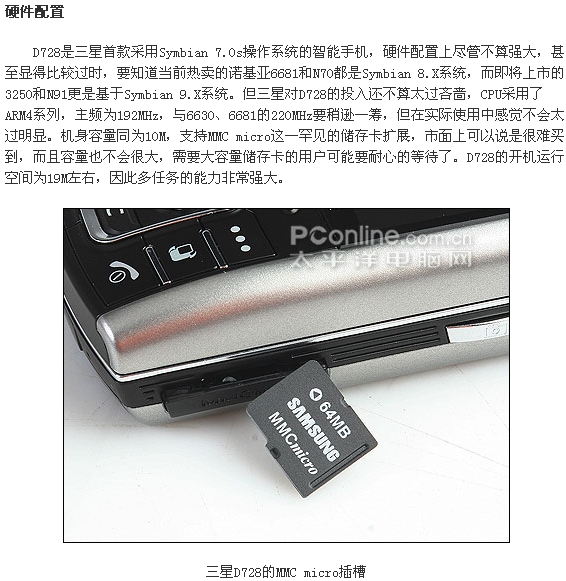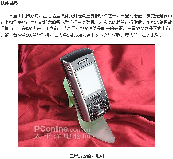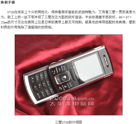 三星的滑盖手机在市场上的发展可以用风调雨顺来形容,而在智能手机领域,三星尚属起步阶段,对未来智能手机发展的路线还处于探索阶段,因此各大主流的智能系统都开始零星的出现在三星的产品上。D728正是在这种背景下的时代产物,采用了Symbian 7.0s S60 V2.1平台的滑盖手机似乎极具有吸引力,抢在诺基亚N80前面上市,一下子吸引了众多眼球的关注。D728在性能方面能否达到我们预期的想象。