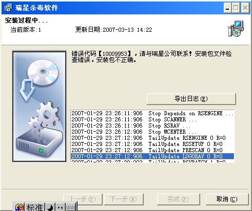 2007-03-12 11:37:19:875 校验文件错误,继续安装吗?