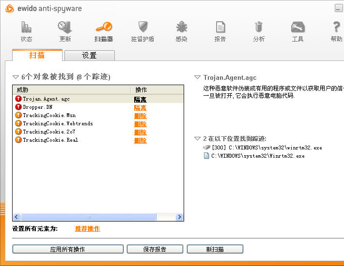 最近用EWIDO扫描,发现有两个病毒杀不了!!!