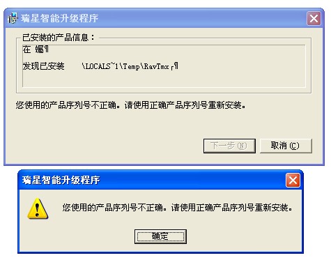 我上次删了瑞星,以为我电脑没次给瑞星自动起动。高的次次死机。这几天有很多病毒,想再装就这样了。 按了下一部就说我系列号错误了。谢谢