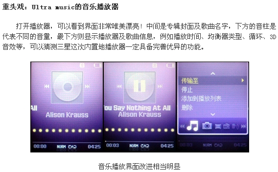 ·音乐功能强大:打上Ultra music的旗号,音乐功能得以大大提升,播放软件、音效均相当出色
