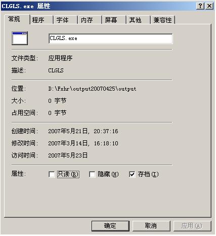 该病毒只感染EXE文件 ,且感染后EXE文件图标不变 还可以正常使用,但在EXE文件属性中 看不到文件的详细属性了! 此时用瑞星软件查杀的话 是找不到病毒的 但通过把软件中的捆绑信息 踢出来时候 瑞星到是 能够提示病毒!!!