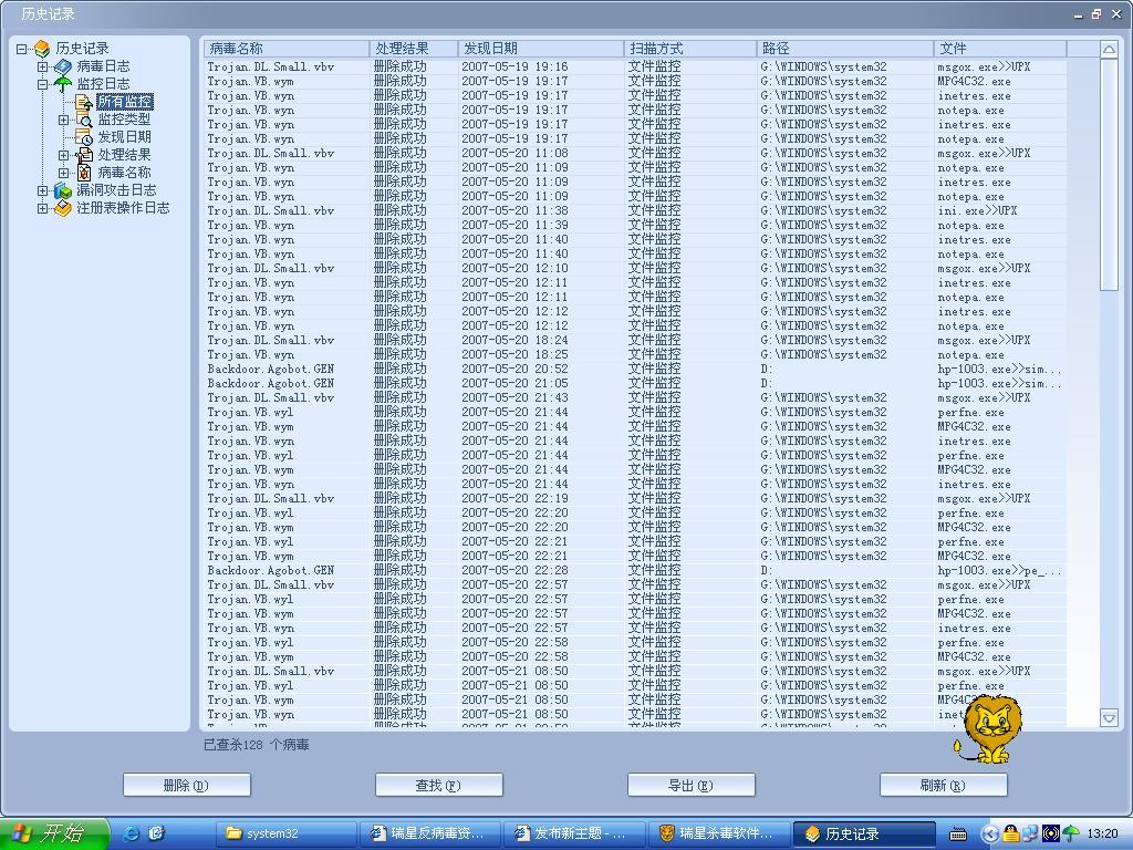 我的机子用瑞星查到四种病毒:分别为trojan.vb.wyl, trojan.dl.small.vbv, trojan.vb.wym, trojan.vb.wyn.每次瑞星都提示已清除.但在使用电脑时,还是时不时提示发现这上面的四种病毒.求助各位高手,请问这四种病毒应该怎样杀?非常感谢!