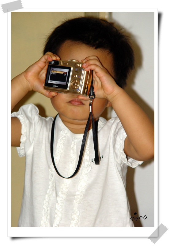 2岁9个月,嘟嘟正在与我对拍,这个姿势是千百次纠正后的坚持