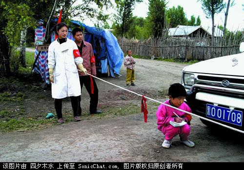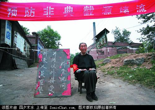 22.“非典”检查站前,一个小女孩抄下准备进村的汽车车牌号