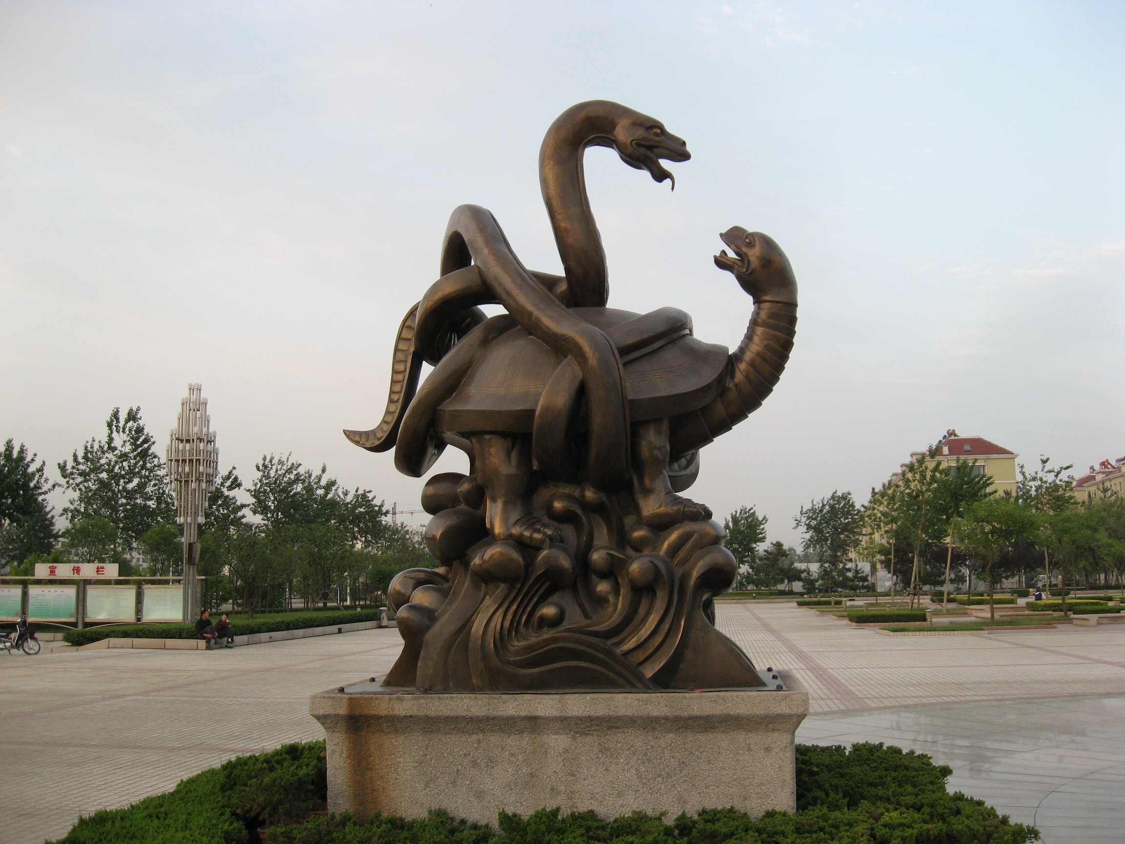 它和其他三灵一样,玄武也由天下二十八星宿变成的:斗、牛、女、虚、危、室、壁。而古时后的人对玄武它的解释有以下的数种,‘玄武’即龟。《礼记.曲礼上》云:‘行,前朱鸟而后玄武...’‘玄武’乃龟蛇。《楚辞.远游》洪兴祖补注:‘玄武,谓龟蛇。位在北方,故曰玄。身有鳞甲,故曰武。‘玄武’为蛇合体、龟与蛇交。