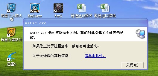 如图点 确定 后 MSTSC.EXE进程关闭,怎么能弄好?