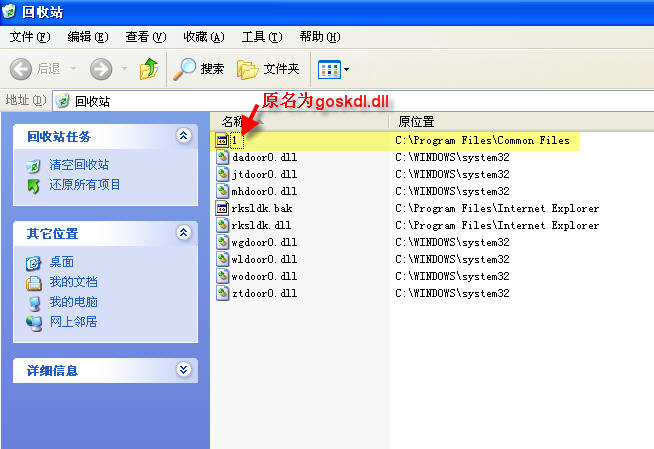 (1)C:\Program Files\Common Files\goskdl.dll这个病毒文件比较特殊——须改名后才能删除。