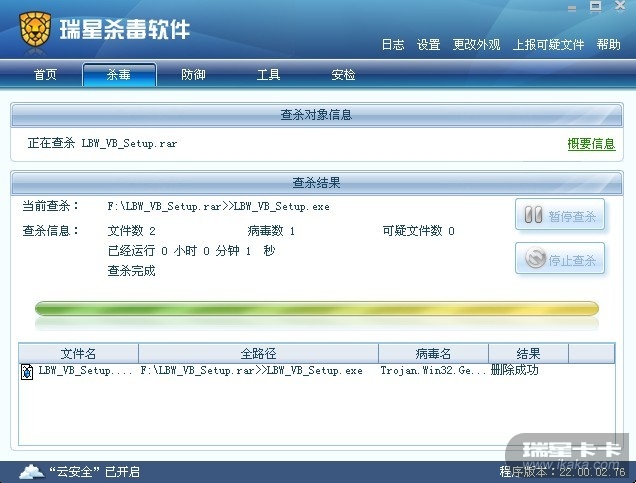 万事达回复:请升级瑞星至最新版本病毒库:21.22.34 不报毒。附件: