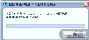 最近KAKA升不了级,总是提示升级失败 :Versionhistory.txt.zip,错误代码:0xffffffff/0xef1(down),