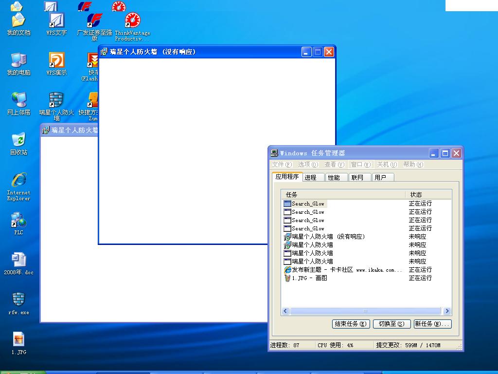 我的机器安装的是瑞星组合套装,但今天上网后发现防火墙无法正常升级更新,但杀毒软件却可以,杀毒软件已更新到20.28.21,防火墙却还是20.27.40,点击启动软件升级后,安装升级程序时程序就定住不动了,显示"无法响应",于是我上瑞星网页下载20.28版本的升级安装程序,下载成功后点击运行,结果同样定住变成白框,WINDOW任务管理器中则显示该程序"无法响应",我重启机器好几次都是这样,这到底是怎么回事呢,麻烦谁能帮帮我,谢谢!