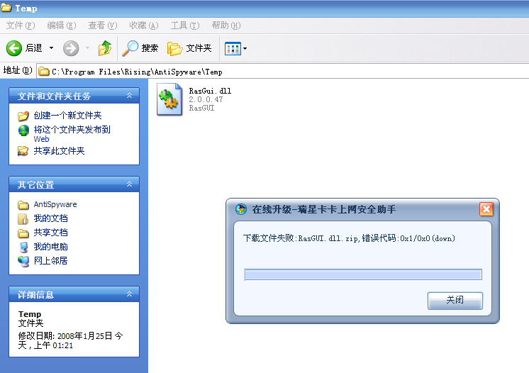 【大糯米的贴子】rasgui.dll文件比较大,由于网络各种原因,是有可能会下载失败的!