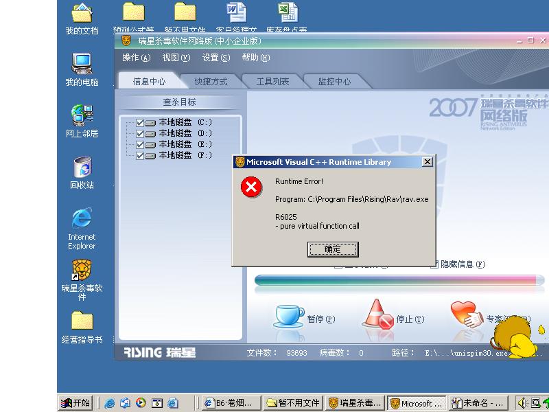 我企业使用的是瑞星网络版,从星期一开始win 2000 机子陆续出现杀毒报错信息