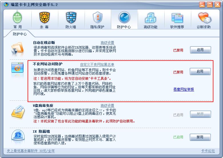 5.不良网站访问防护 增加了“自定义不良网站黑名单”和“恶意网址举报”功能