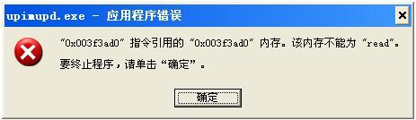 顺便补充一下,输入法在活动的状态下就会发生这种错误.时间大约在5-10分钟左右就会跳出这种提示.还有在输入法的词库自动更新的时候也会出现这种错误.