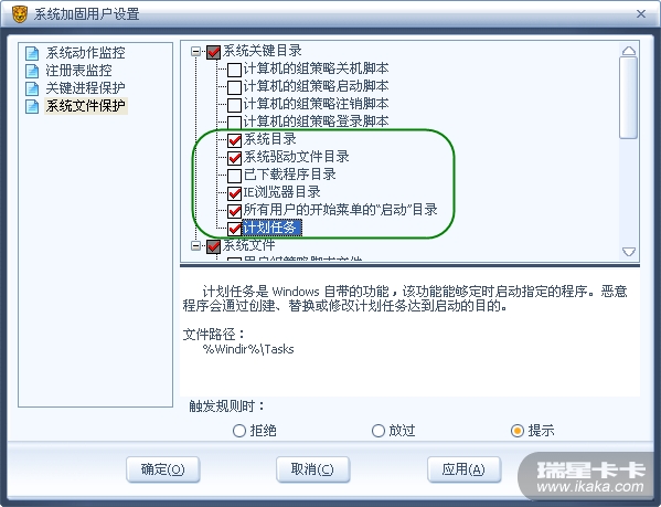 在系统加固中加选了“计划任务”。