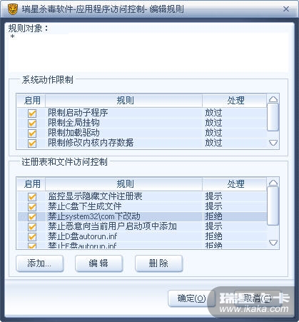 说明:前次关于安全模式的保护规则由于瑞星在规则的说明上有问题(简省太多),才使我多加了条规则,经测试那条规则可去掉,不去也行。